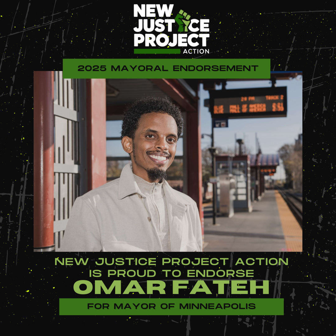 At New Justice Project Action, we endorse candidates who are unapologetically committed to justice: who will fight for affordable housing, economic dignity, community-centered safety, and human rights-both here in Minneapolis and globally.